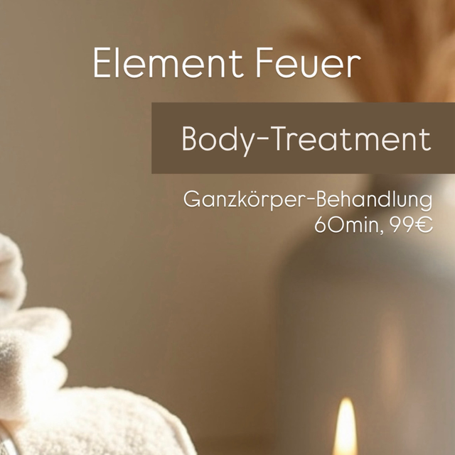 Alle Treatments der 4 Elemente SPA (Feuer, Erde, Wasser, Luft) regen die körpereigene Regeneration an, stärken Vitalität und Wohlbefinden, unterstützen das Loslassen negativer Einflüsse und fördern die körperliche und seelische Entspannung.